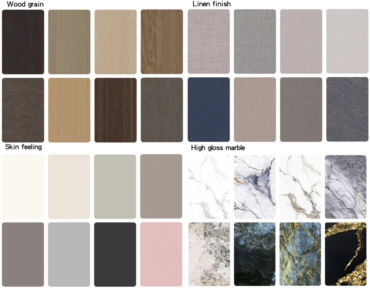 Marble, Wood grain, Metal series, Cloth pattern series,Pure color, as customer required